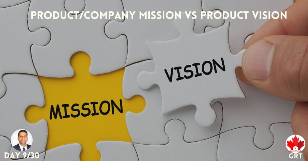 Product/Company Mission and Product Vision go hand in hand in defining the long-term success of any business. A Product Vision statement is what we want to achieve as the end goal and our vision statement should capture that goal clearly. A product vision is often long-term 3 - 5 years at the very least. Whereas the Product/Company Mission statement focuses on the business, its objectives, and the approach we will be taking to reach the end goal (ie. Vision).